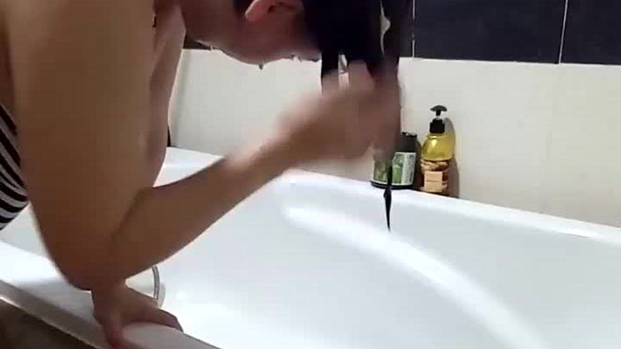 Slender gay washes in the shower