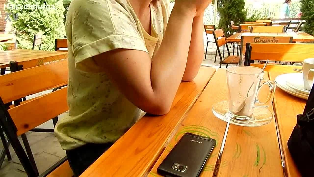 Hairy mature woman flashes chubby body in public park