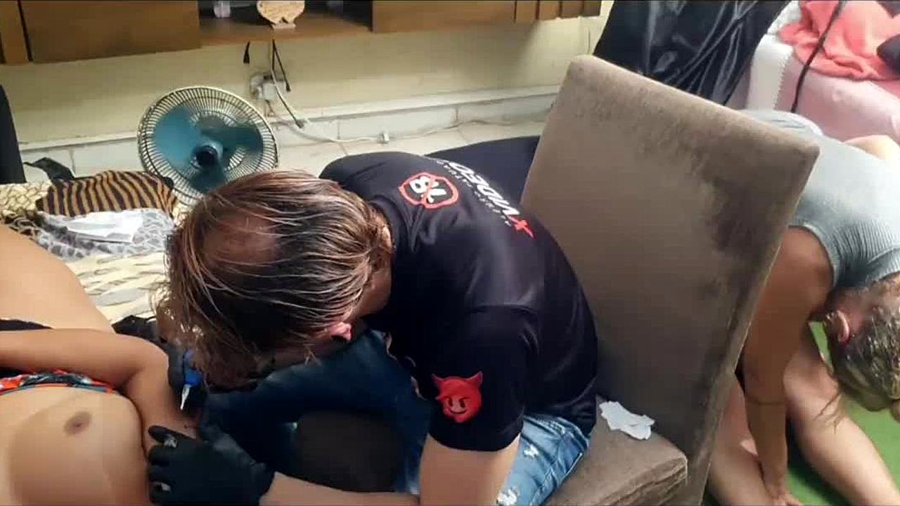A delicious orgy in Rio with Fada Mel and tattooed ninja, rough oral and toys